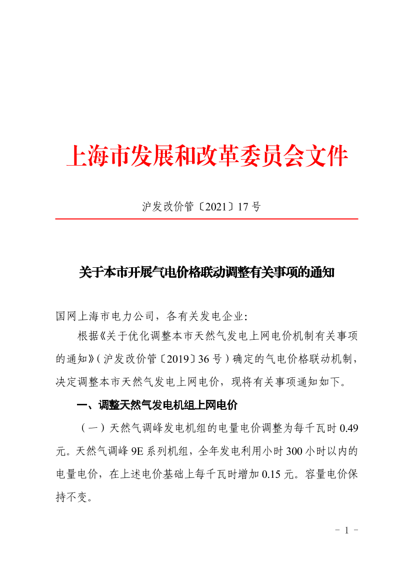 根据《关于优化调整本市天然气发电上网电价机制有关事项的通知》(沪发改价管〔2019〕36号)确定的气电价格联动机制,决定调整本市天然气发电上网电价,现将有关事项通知如下。