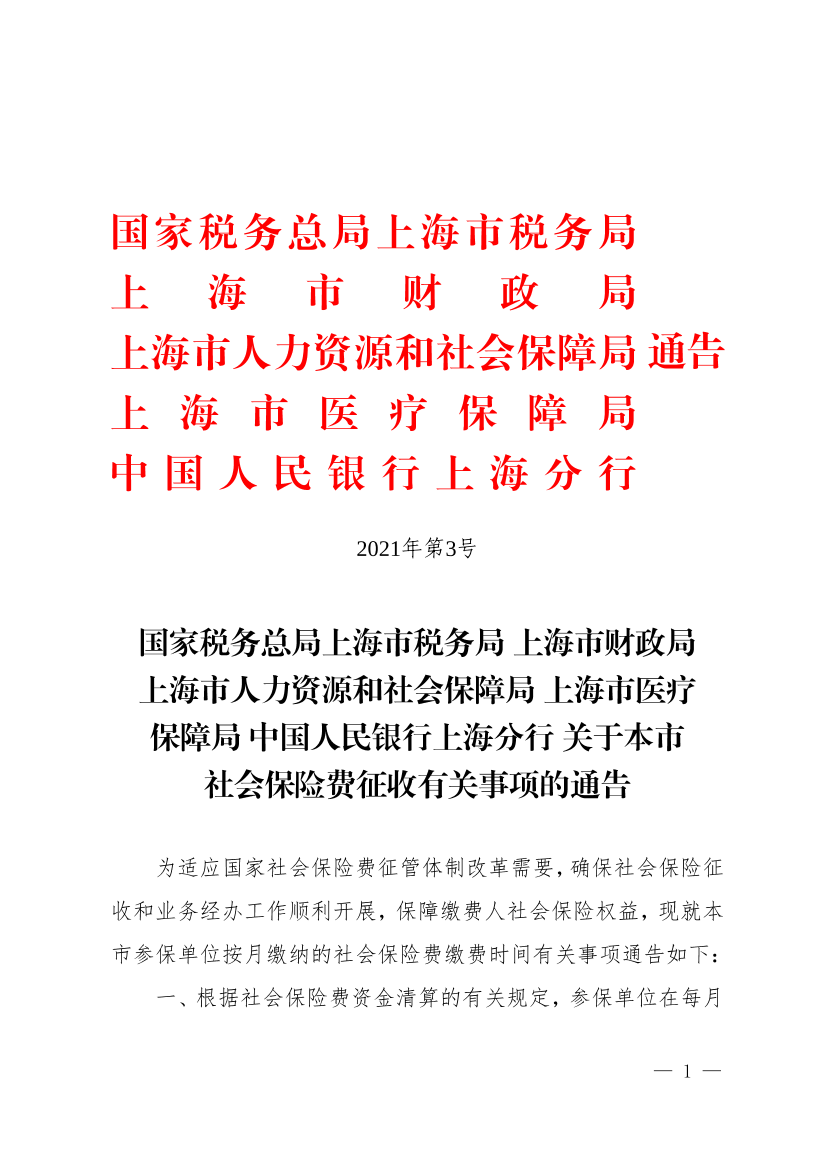 为适应国家社会保险费征管体制改革需要,确保社会保险征收和业务经办工作顺利开展,保障缴费人社会保险权益,现就本市参保单位按月缴纳的社会保险费缴费时间有关事项通告如下: