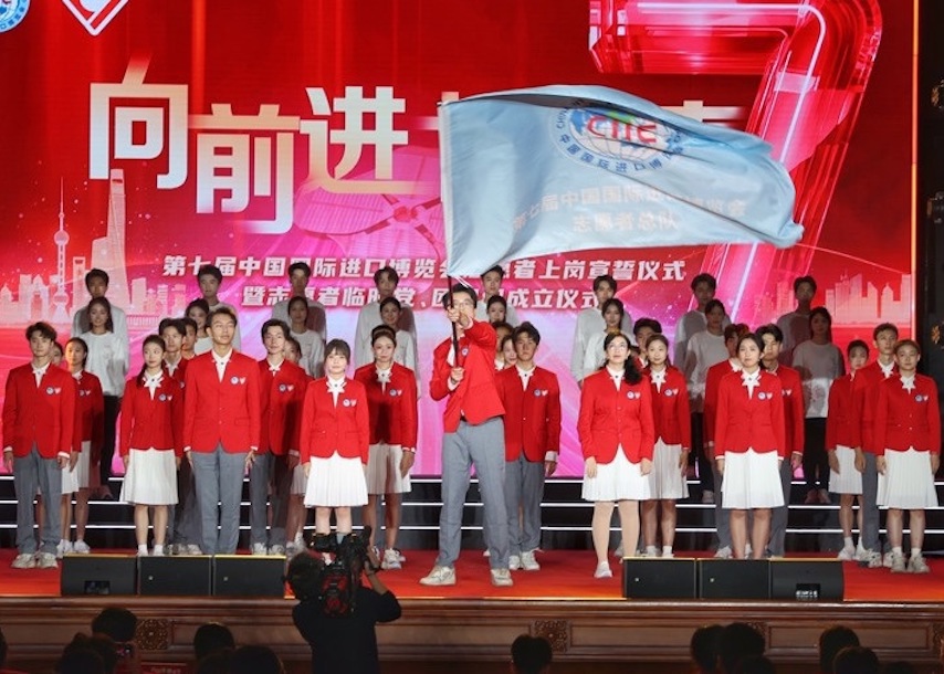 第七届进博会志愿者宣誓上岗 3488名“小叶子”整装待发