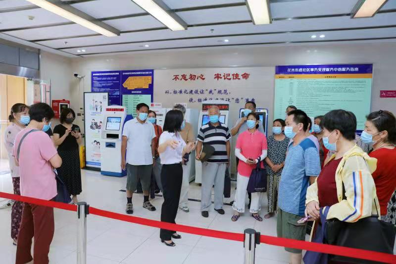 活动邀请了辖区内居民代表参观花木社区事务受理中心“一网通办”服务窗口,通过近距离的开放展示政务服务一网通办新模式,了解“一网受理,只跑一次,一次办成”的工作流程。随后,引导代表们到花木街道儿童中心和花木党群服务中心,参观了解花木妇女儿童工作发展情况,并现场观看建党百年历程影片,感悟花木人文发展历史。