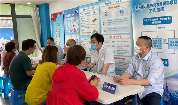 浦东新区不动产登记中心工作人员面对面接受社区居民咨询,进行答疑解惑。除了在现场提供咨询及宣传不动产登记改革4.0的新举措,并指导社区居民使用不动产登记网上预申请等服务外,他们还积极与群众沟通,希望社区居民多提意见建议,了解群众更多的服务需求。