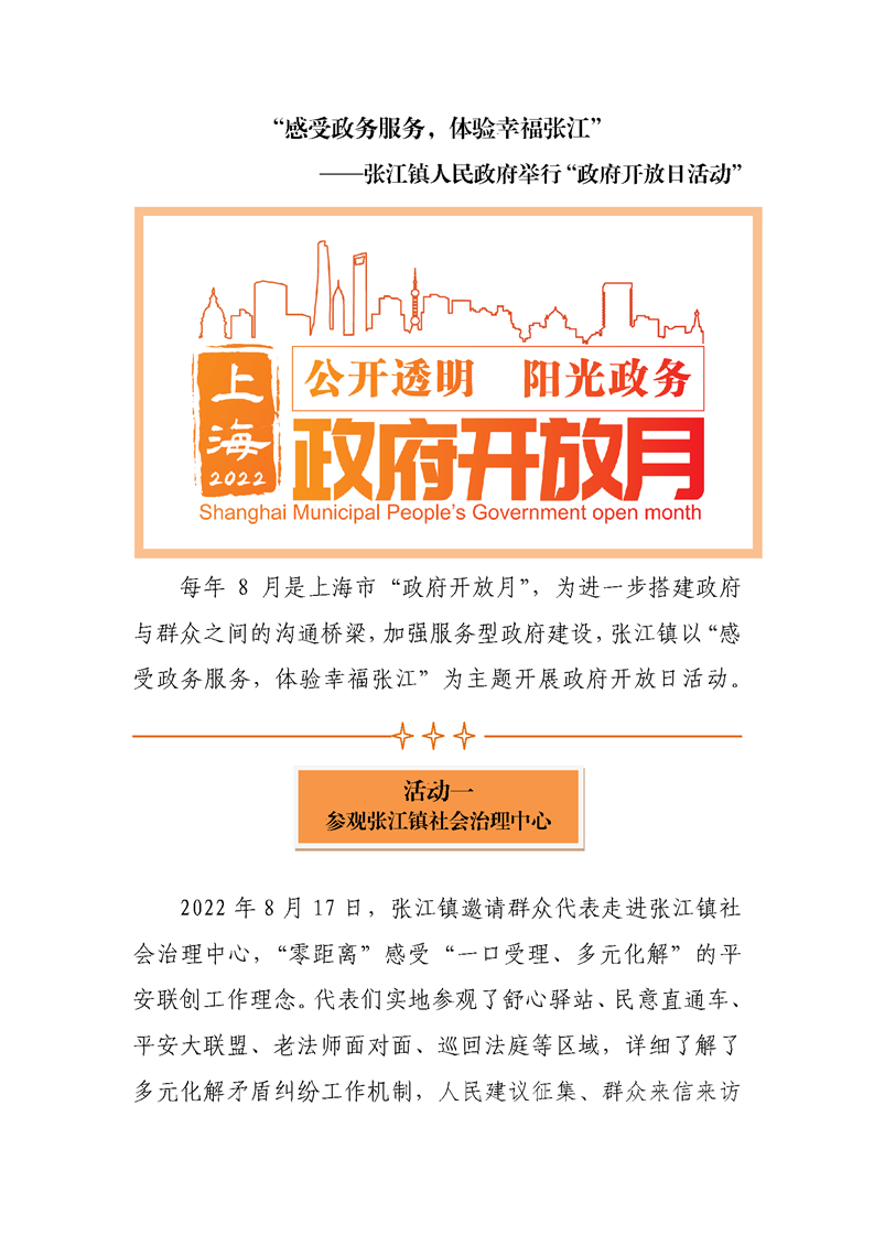 “感觉政务服务 体验幸福张江”--浦东新区张江镇举办政府开放日活动
