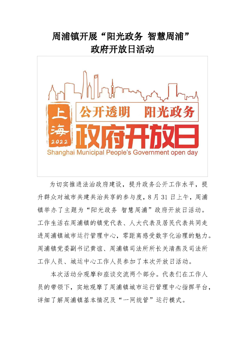 浦东新区周浦镇开展“阳光政务 智慧周浦” 政府开放日活动