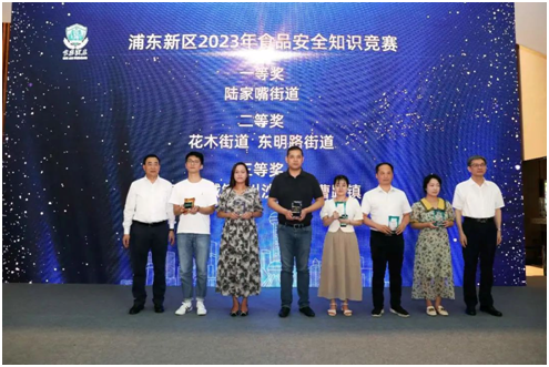 许瑾、吕雪城同志为浦东新区2023年食品安全知识竞赛获奖人员颁奖。
