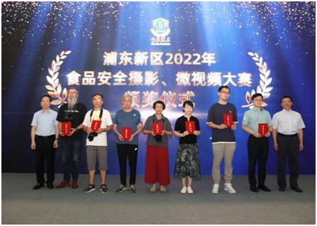 陈祖尧、张东升同志为浦东新区2022年食品安全摄影、微视频大赛获奖人员颁奖。