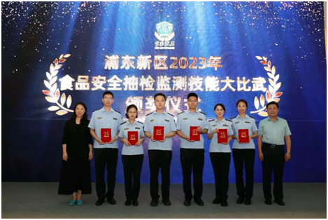 张力同志为浦东新区2023年食品安全抽检监测技能大比武获奖人员颁奖。