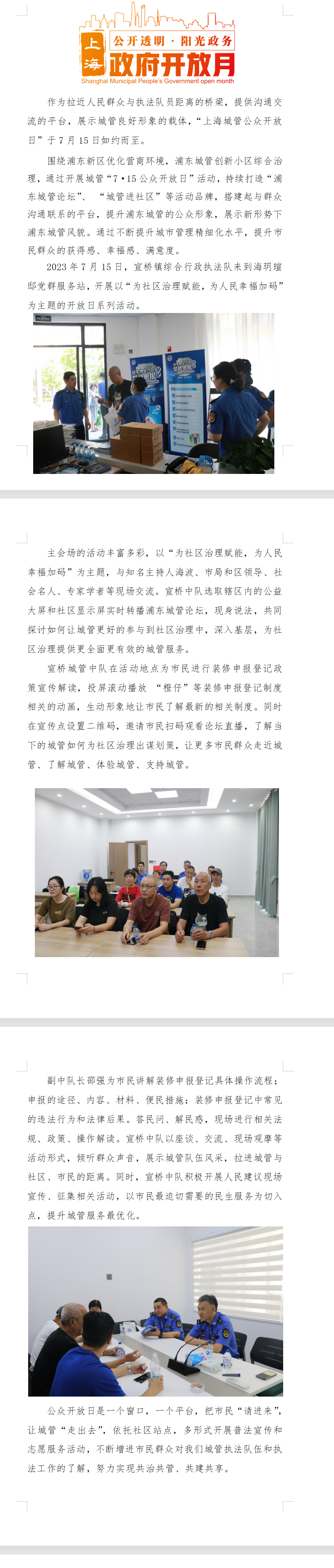 为社区治理赋能,为人民幸福加码——浦东新区宣桥镇开展2023年“政府开放日”活动