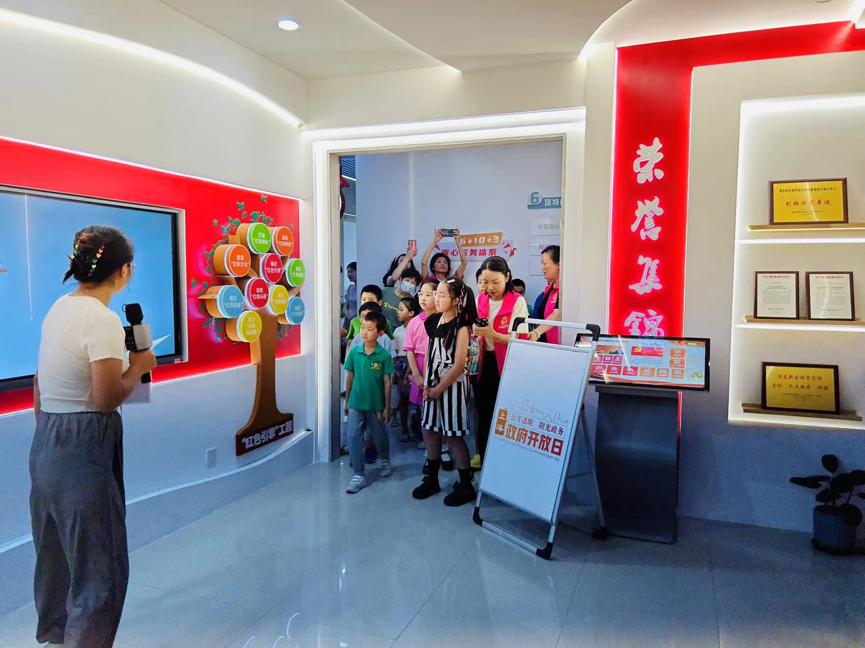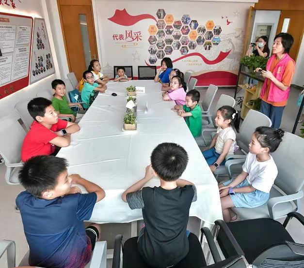 8月10日,“小手牵大手”——2023年高行镇少年儿童暑期一日营暨政府开放日活动顺利举行,来自社区和新就业群体家庭的15名少年儿童携手父母走进高行红色引擎工程展示厅、人大代表之家、高行镇城运中心等地进行参观交流。