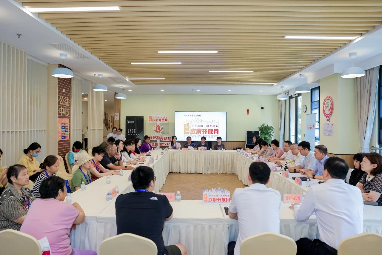 座谈会上,市民政局养老服务处处长娄国剑介绍了上海市养老服务建设情况,普陀区民政局党组书记、局长许磊就普陀区养老服务民心工程和为民办实事项目推进情况进行了介绍。活动现场,人大代表、政协委员以及市民代表们围绕养老服务群众关切问题展开深入交流与探讨。随后,市政府办公厅政务公开办王晓妹主任、综合处叶咏霞副处长分别就此次“政府开放月”活动进行点评,并表示要携手社会公众,强化政民互动,促进政务公开与监督,共建共治共享幸福家园。最后,市民政局副局长沈敏高度肯定了普陀区在养老服务工作中所取得的成绩。他指出,养老服务是政府关切、群众关心的民生大事,大家要发挥好“政府开放月”活动作为政府工作展示的窗口、政民沟通的平台作用,开展好养老机构常态化开放活动,诚挚邀请市民朋友们亲身体验,近距离感受养老服务的温度和精度。