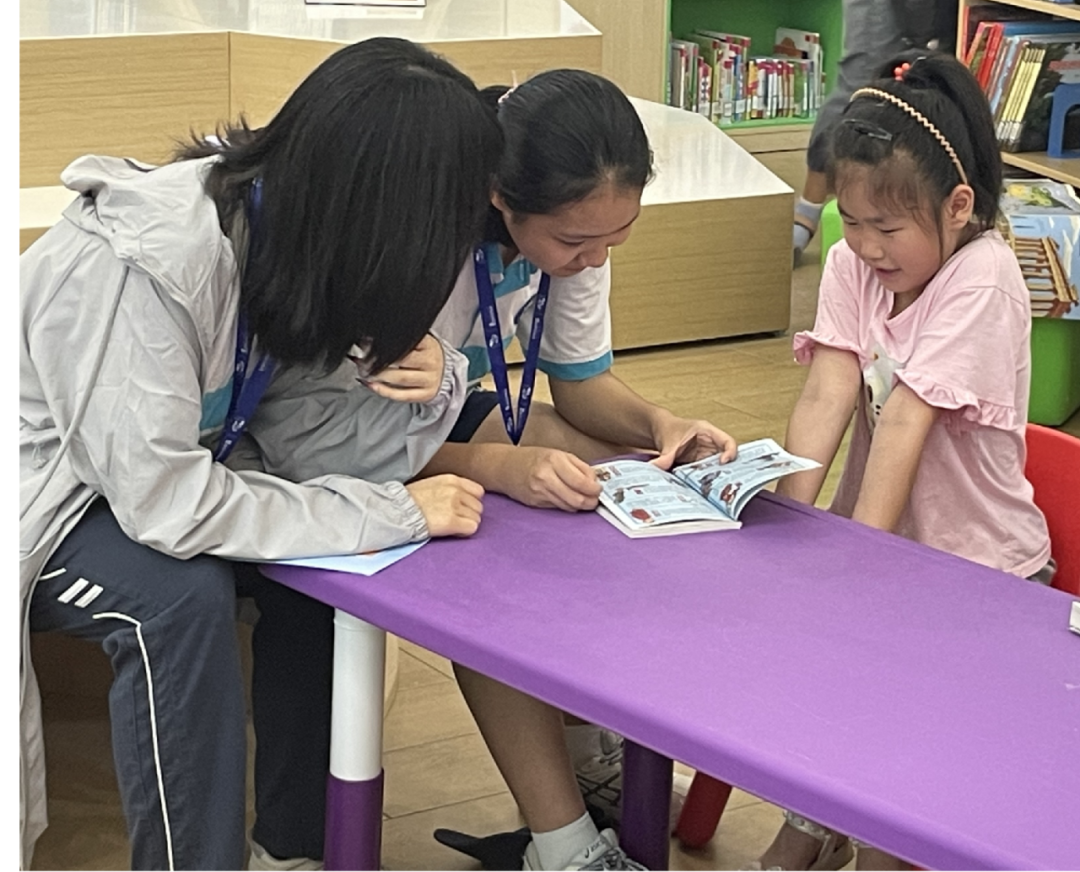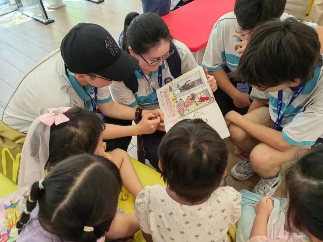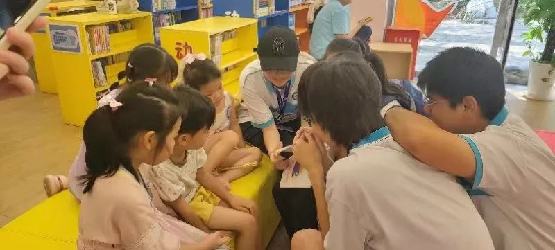 青少年志愿者们漫步在充满童趣与书香的环境中,感受每一处细节对儿童的关怀与尊重。同时,这些志愿者还承担起了小老师的角色,与前来参观的小朋友们进行互动,分享阅读的乐趣,引导他们发现书中的奇妙世界。