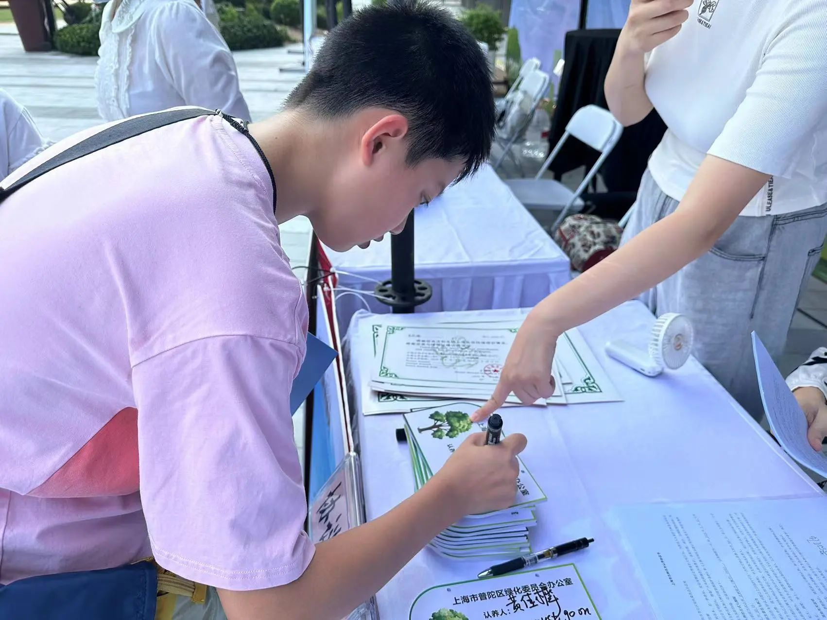 活动现场,普陀区林长办还为市民们提供古保宣传、野保宣传、手写认养牌、手工DIY等互动摊位,并认真倾听市民对于绿化建设和生态保护工作方面的意见建议。