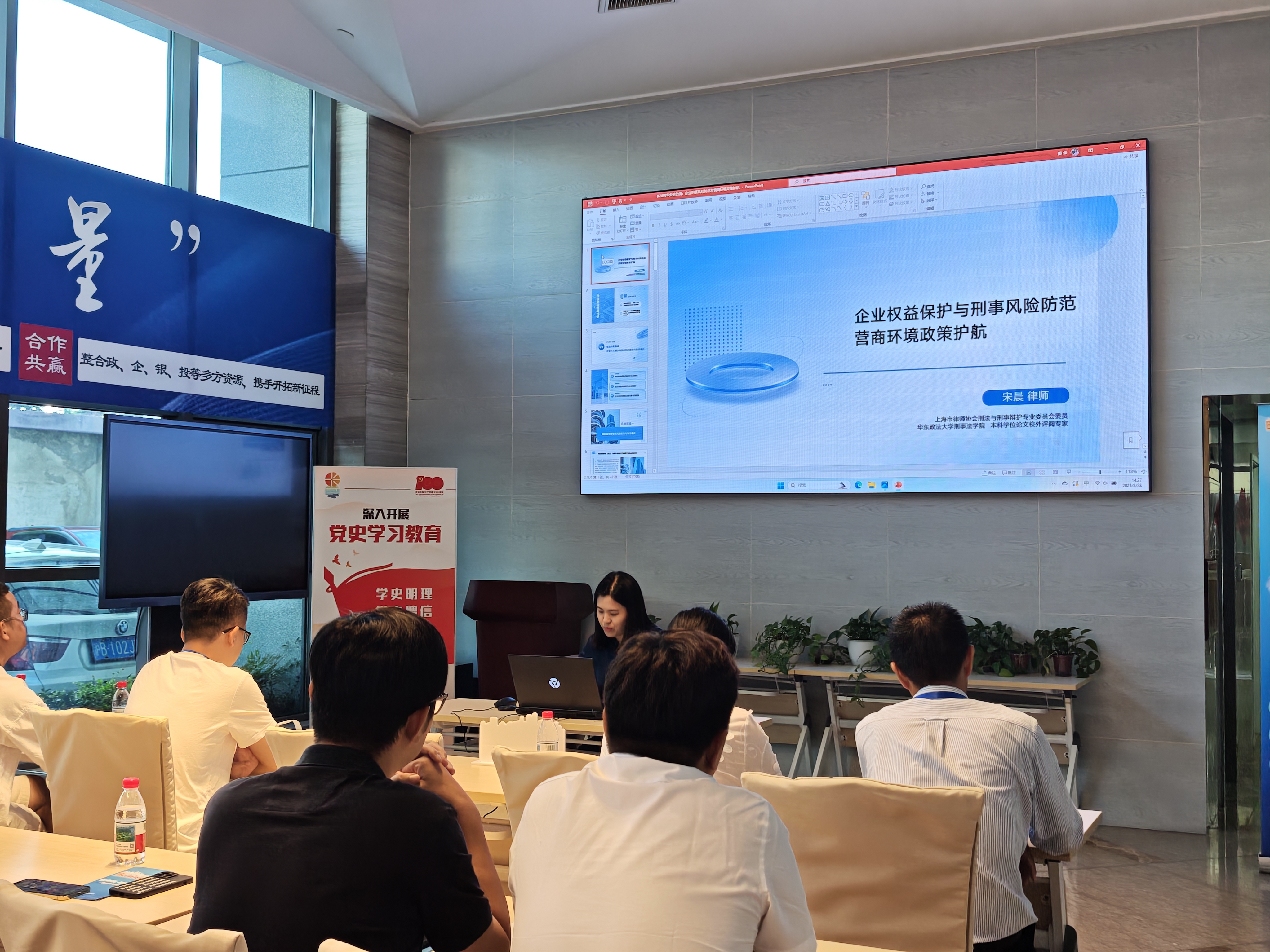 宋律师的讲解内容涵盖企业运营中常见的刑事风险点、合规管理要点以及当前优化营商环境的最新政策法规,通过大量实际案例,为企业代表们上了一堂生动的法治教育课,助力企业筑牢安全防线,实现稳健经营,同时帮助企业精准理解并运用当前惠企利商政策。