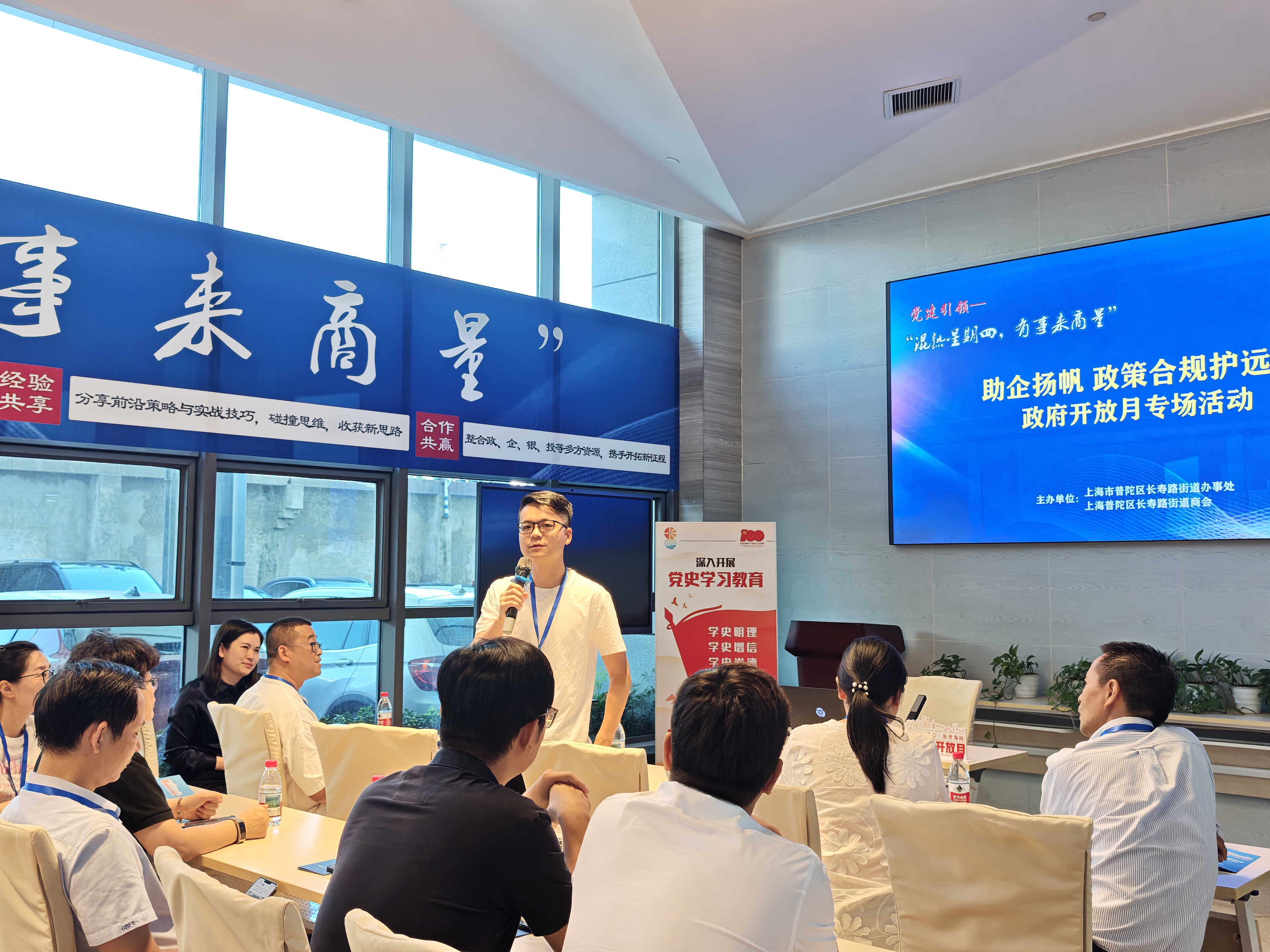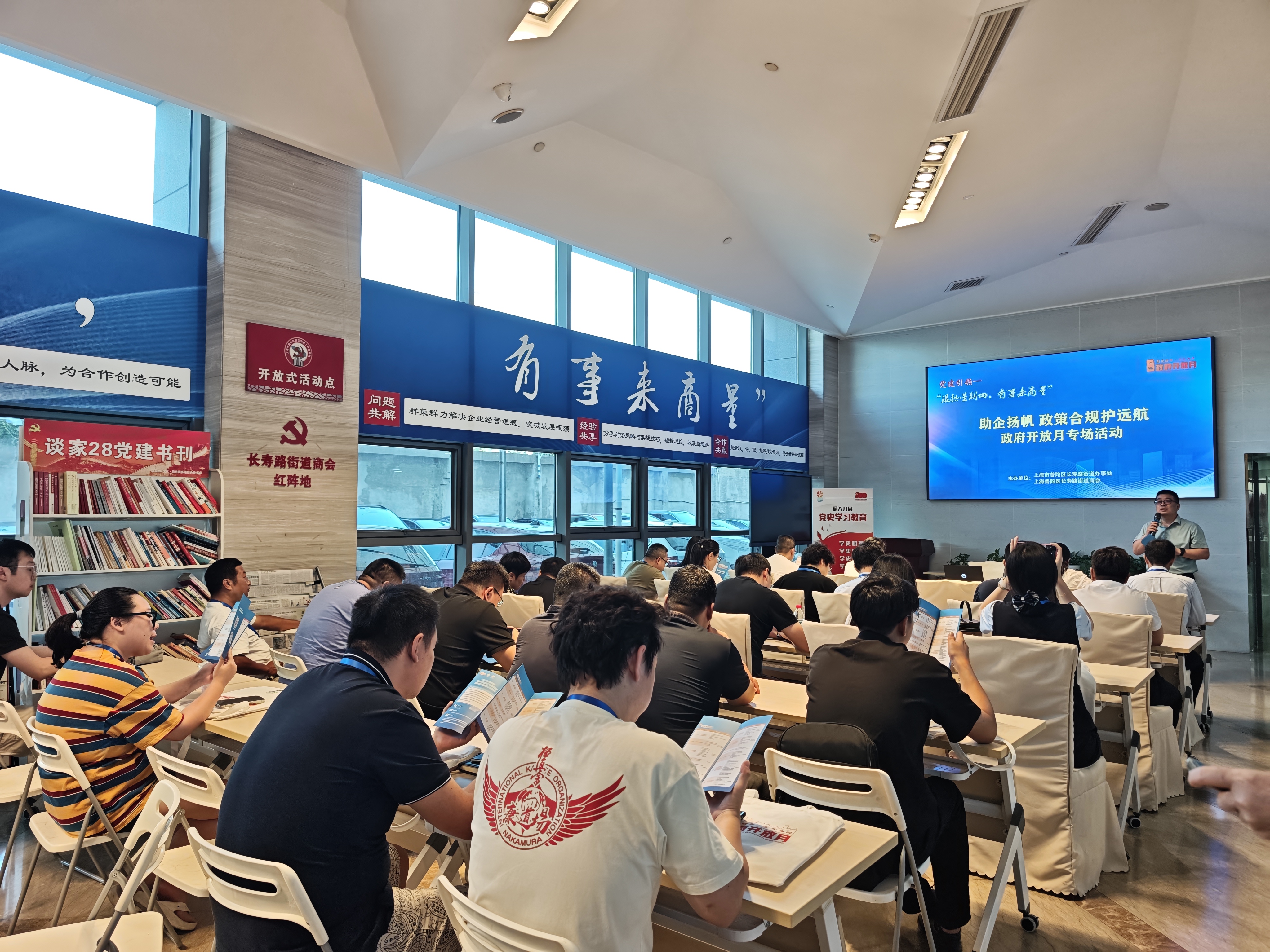 为进一步深化政务公开,提升为企服务能级,8月28日,长寿路街道联合长寿商会于盛泉大厦举办“政府开放月”系列活动之“混熟星期四”企业法治营商环境宣讲专题活动。