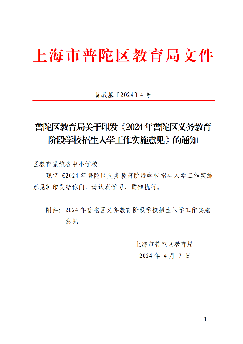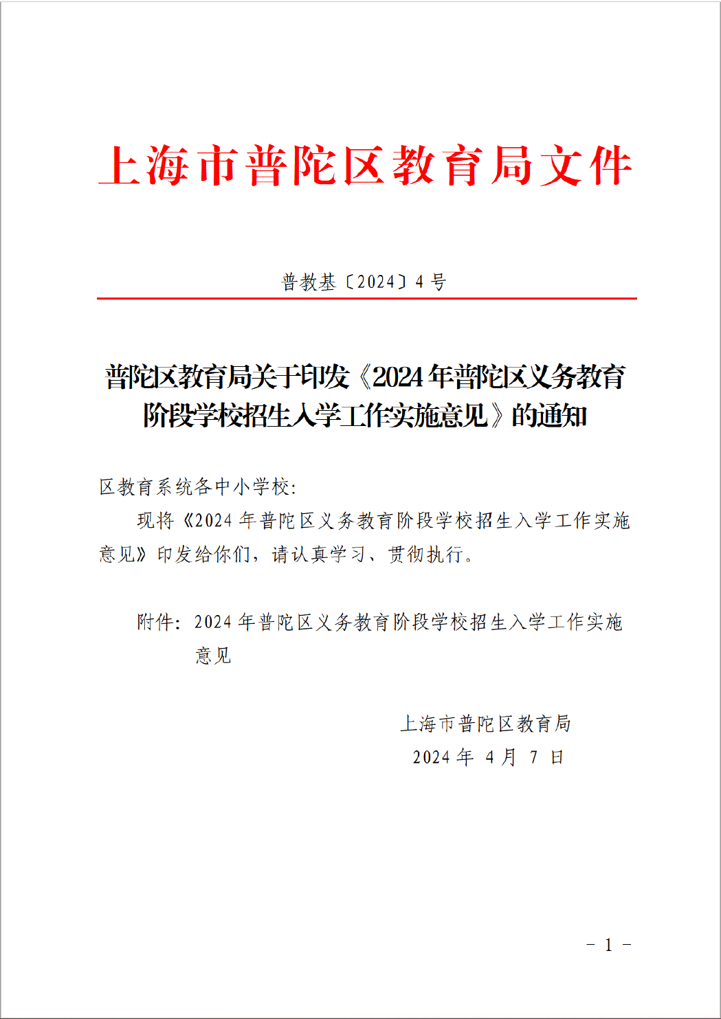 附件:2024年普陀区义务教育阶段学校招生入学工作实施意见