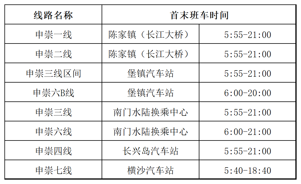 记者从崇明巴士公交公司、上海客运轮船公司了解到,自6月1日起,崇明安全有序恢复50条公交线路运行,初期运行间隔将根据实际营运情况为准;6月1日至6月5日,上海客运轮船公司恢复部分航班,6月6日起计划逐步有序恢复其他航班。