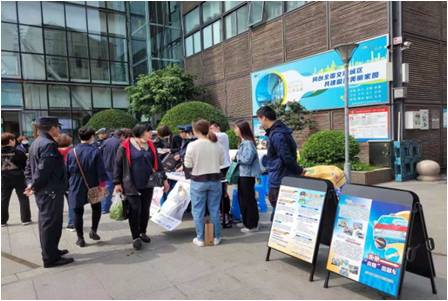 4月28日上午,根据上级文件精神,为提升市民出行文明度,青浦区交通委执法大队联合区公安交警支队、盈浦街道城运中心,在区桥梓湾商业中心开展“进商圈”整治非法客运主题宣传活动。