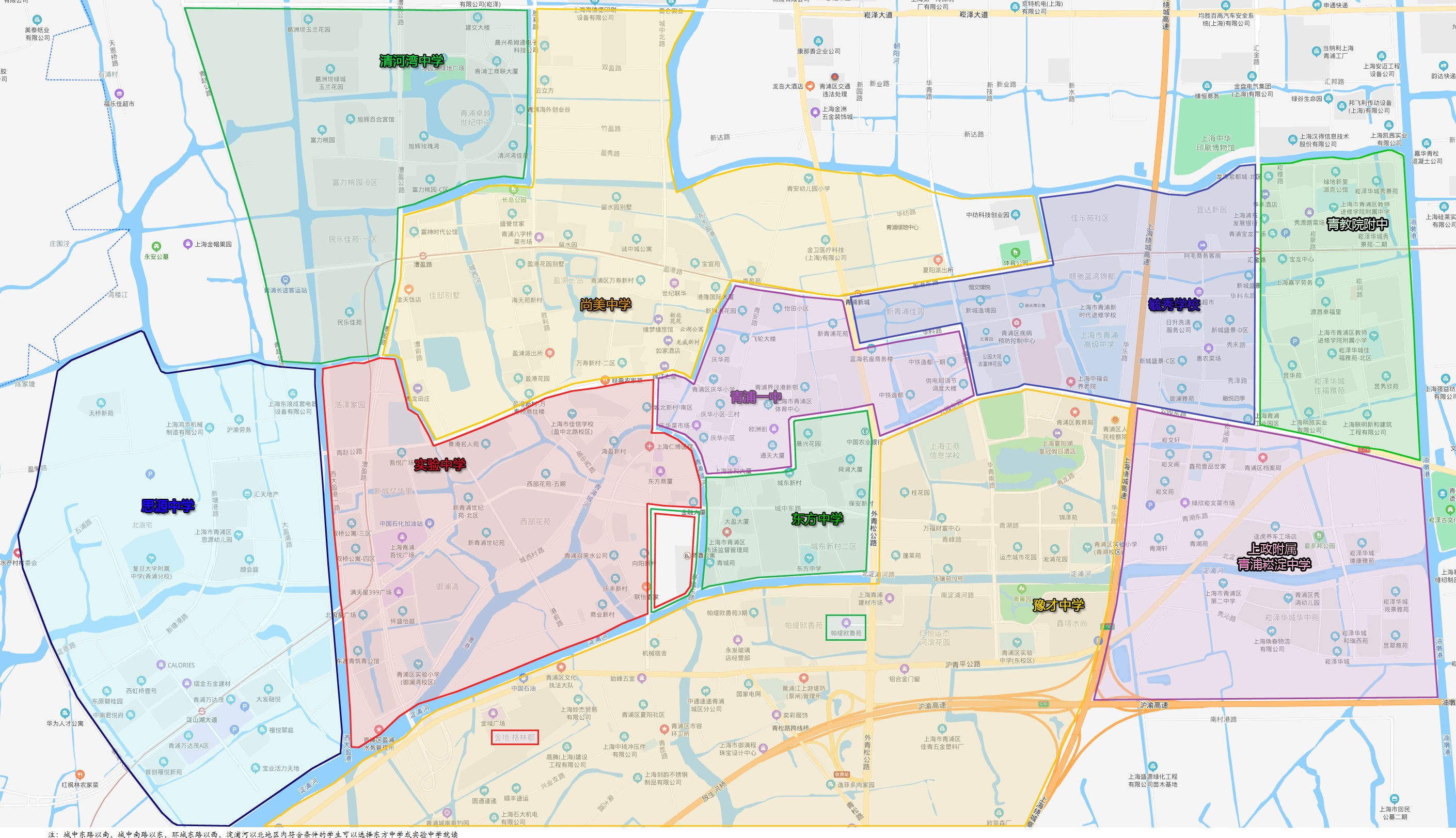 | 上海市青浦区实验中学 | 盈浦街道 | 三元河居委 | 西虹新村 | |