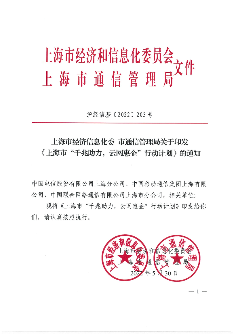 上海市“千兆助力,云网惠企”行动计划