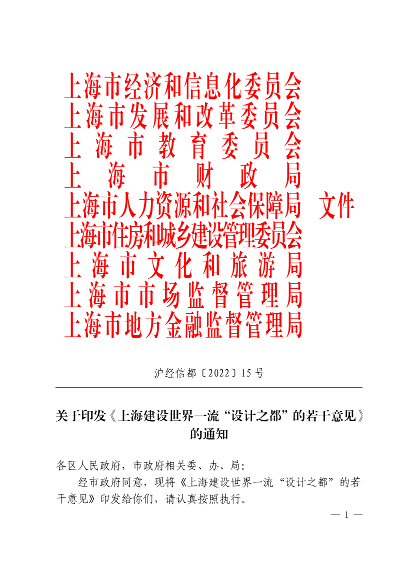 关于印发《上海建设世界一流“设计之都”的若干意见》的通知