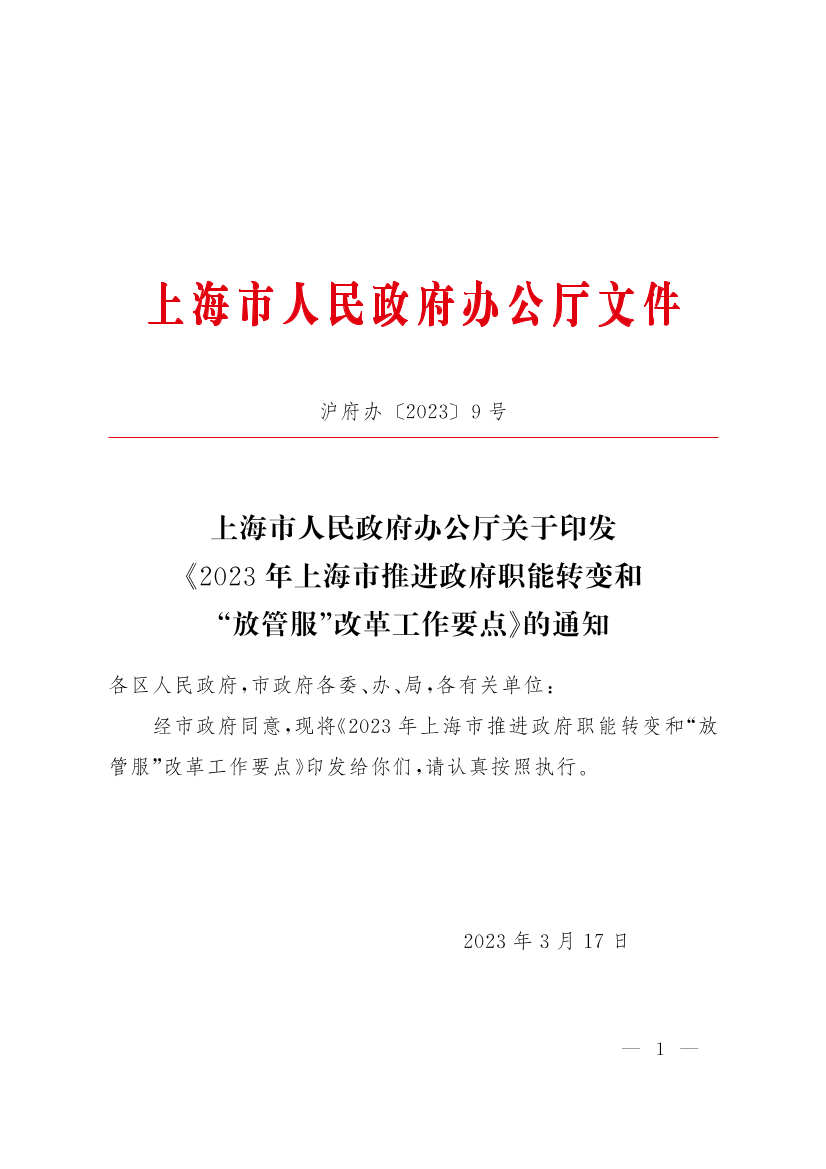 沪府办〔2023〕9号