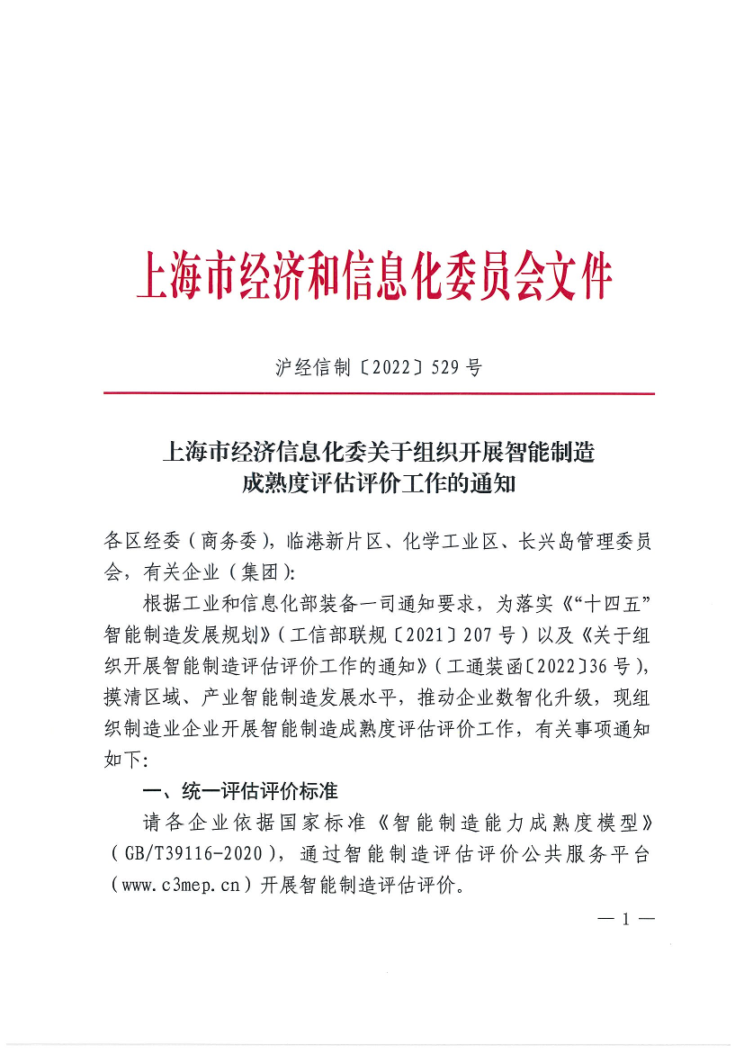 根据工业和信息化部装备一司通知要求,为落实《“十四五”智能制造发展规划》(工信部联规〔2021〕207号)以及《关于组织开展智能制造评估评价工作的通知》(工通装函〔2022〕36号),摸清区域、产业智能制造发展水平,推动企业数智化升级,现组织制造业企业开展智能制造成熟度评估评价工作,有关事项通知如下: