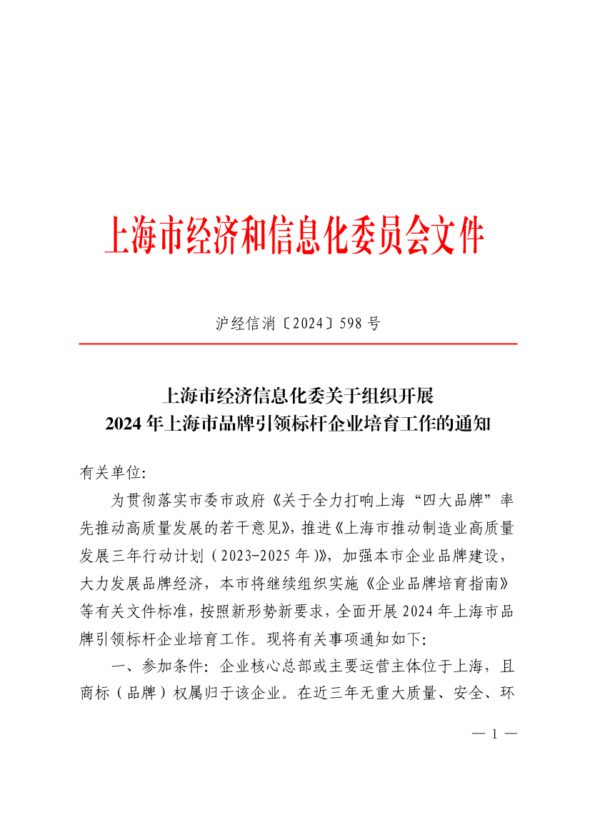 关于组织开展2024年上海市品牌引领标杆企业培育工作的通知