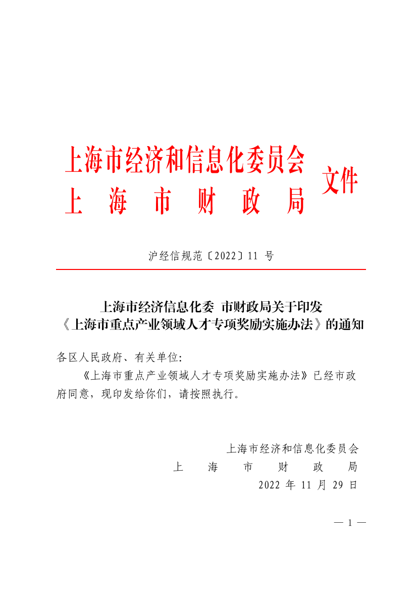 上海市重点产业领域人才专项奖励实施办法