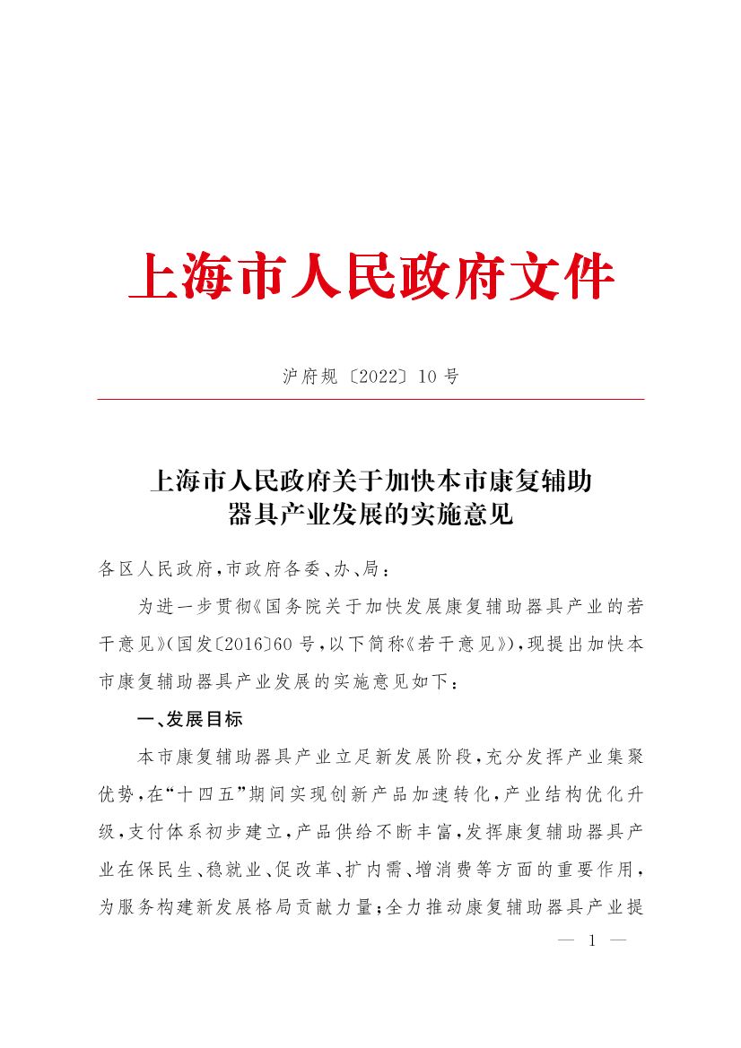 上海市人民政府关于加快本市康复辅助器具产业发展的实施意见