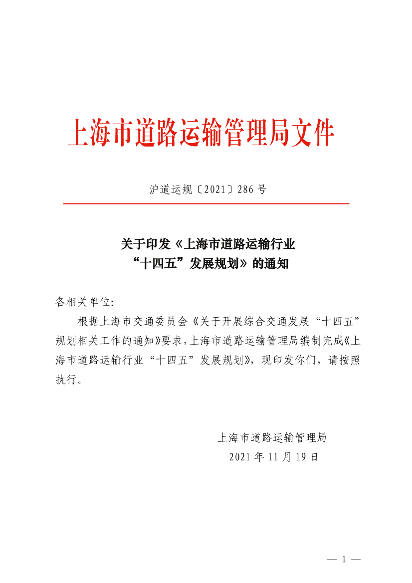 印发日期:2021-11-19 沪道运规〔2021〕286号