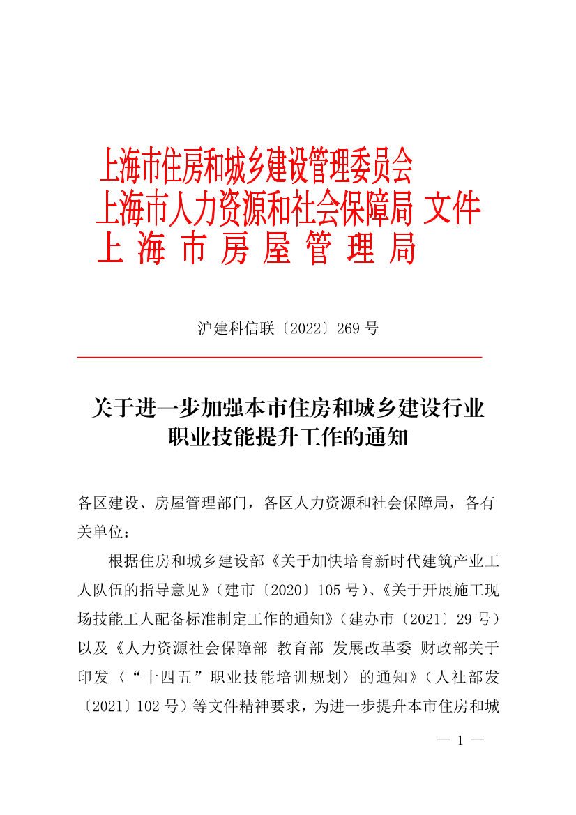 关于进一步加强本市住房和城乡建设行业职业技能提升工作的通知