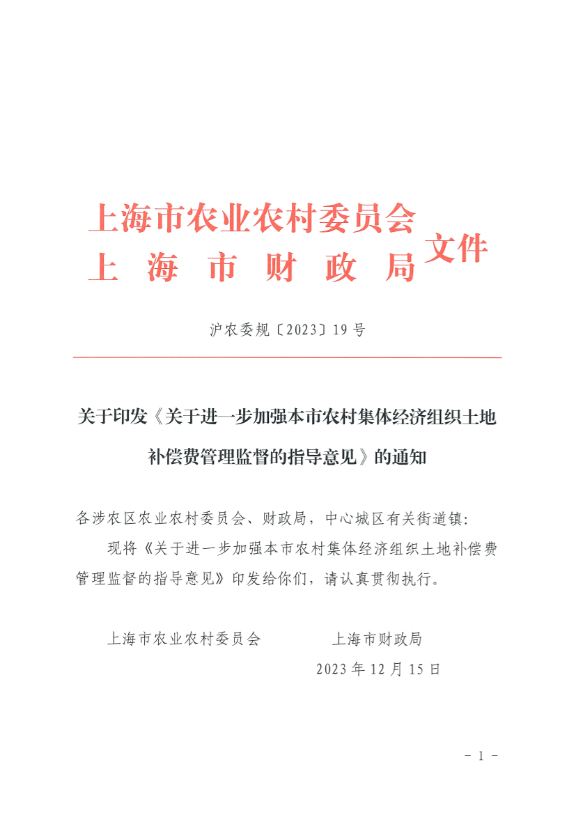 关于进一步加强本市农村集体经济组织土地补偿费监督管理的指导意见