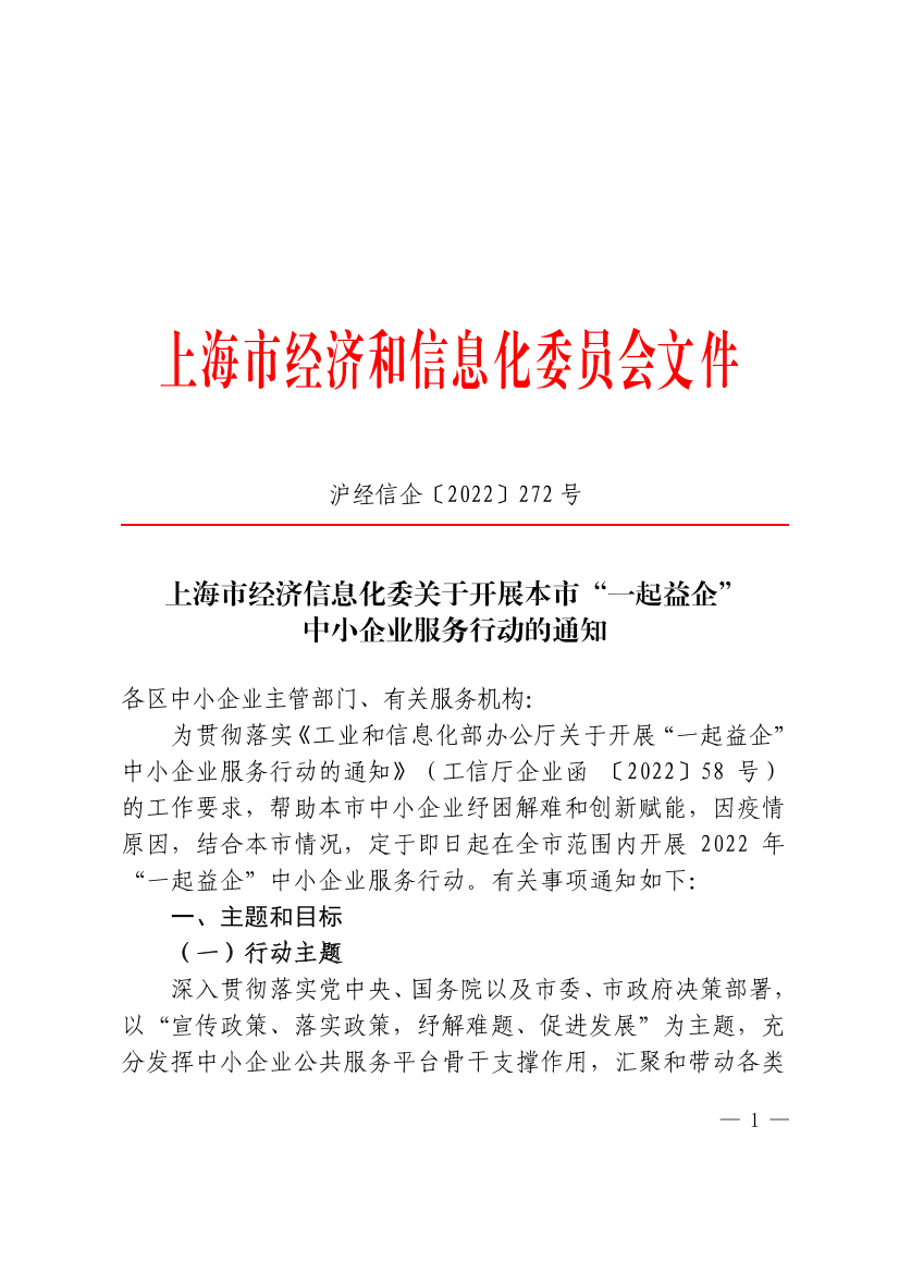为贯彻落实《工业和信息化部办公厅关于开展“一起益企”中小企业服务行动的通知》(工信厅企业函 〔2022〕58号)的工作要求,帮助本市中小企业纾困解难和创新赋能,因疫情原因,结合本市情况,定于即日起在全市范围内开展2022年“一起益企”中小企业服务行动。有关事项通知如下: