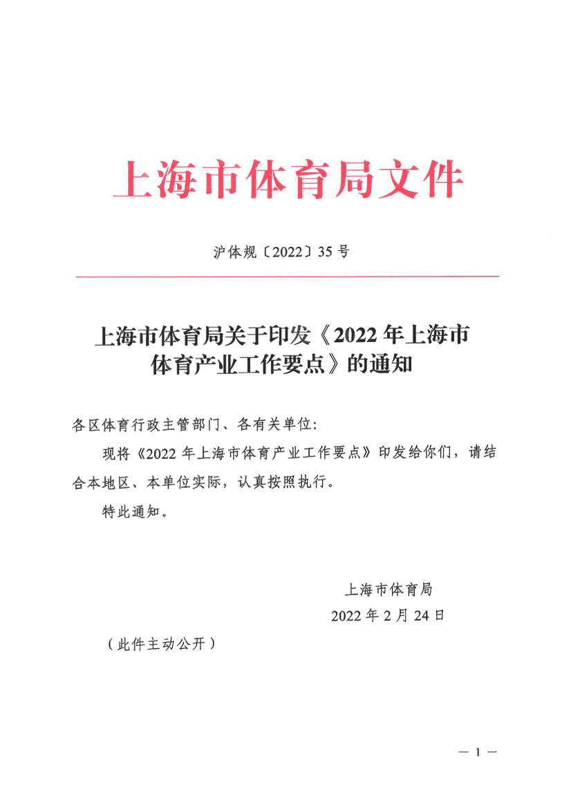 上海市体育局关于印发《2022年上海市体育产业工作要点》的通知