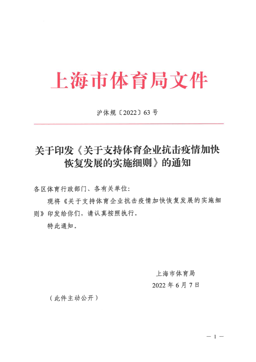 为深入贯彻市委、市政府关于统筹疫情防控和经济社会发展的工作部署,全面落实《上海市全力抗疫情助企业促发展的若干政策措施》和《上海市加快经济恢复和重振行动方案》,支持本市体育企业加快恢复发展,制定本实施细则:
