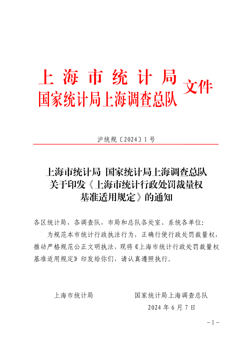 关于印发《上海市统计行政处罚裁量权基准适用规定》的通知