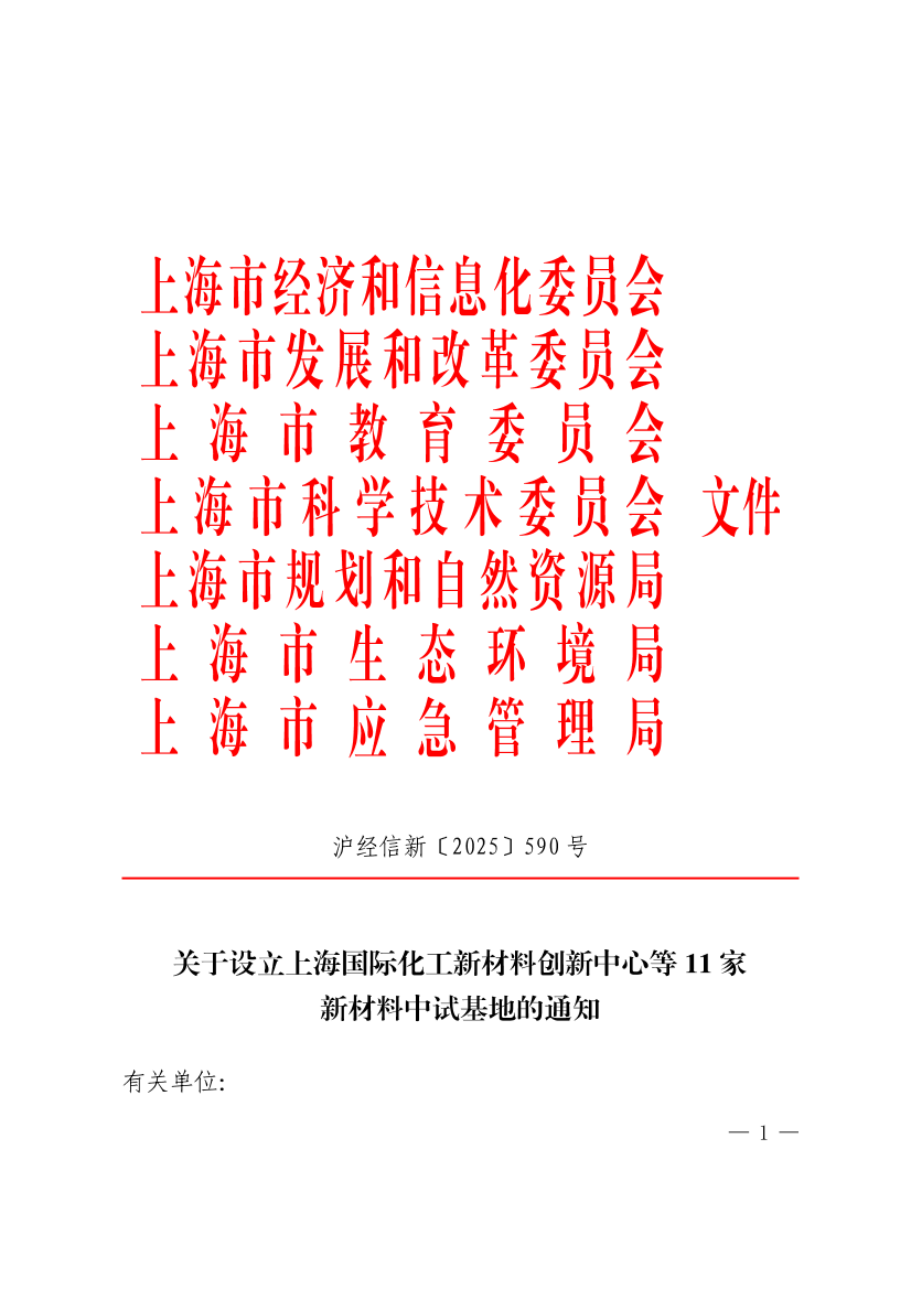 根据《上海市新材料中试基地建设与中试项目管理办法(试行)》(沪经信规范〔2023〕6号)、《上海市新材料中试基地和中试项目生态环境保护指引(2024年版)》(沪环评〔2024〕120号)、《关于开展2024年新材料中试基地申报工作的通知》(沪经信新〔2024〕654号)等文件要求,经企业主体申报、所在园区和所在区推荐,市级部门联合评价,评价结果公示等程序,现公告设立上海国际化工新材料创新中心等11家新材料中试基地。