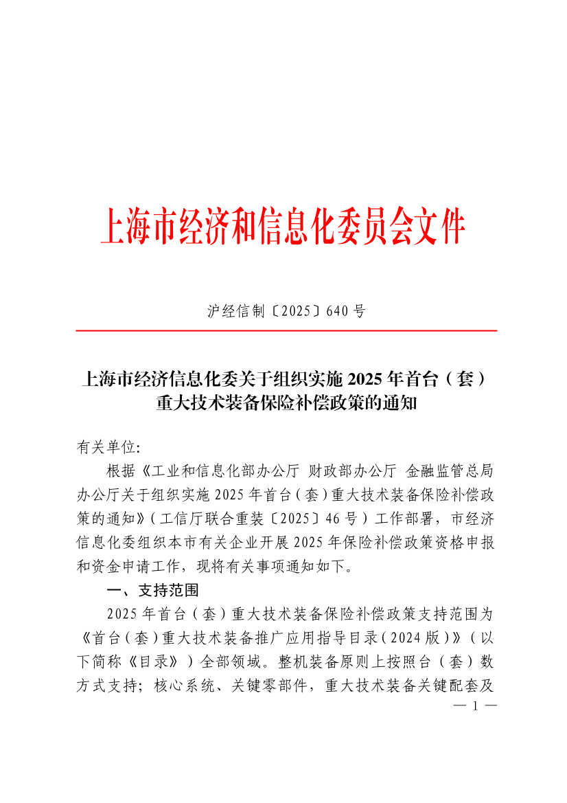 根据《工业和信息化部办公厅 财政部办公厅 金融监管总局办公厅关于组织实施2025年首台(套)重大技术装备保险补偿政策的通知》(工信厅联合重装〔2025〕46号)工作部署,市经济信息化委组织本市有关企业开展2025年保险补偿政策资格申报和资金申请工作,现将有关事项通知如下。