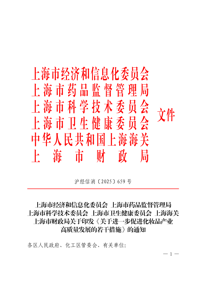 关于进一步促进化妆品产业高质量发展的若干措施