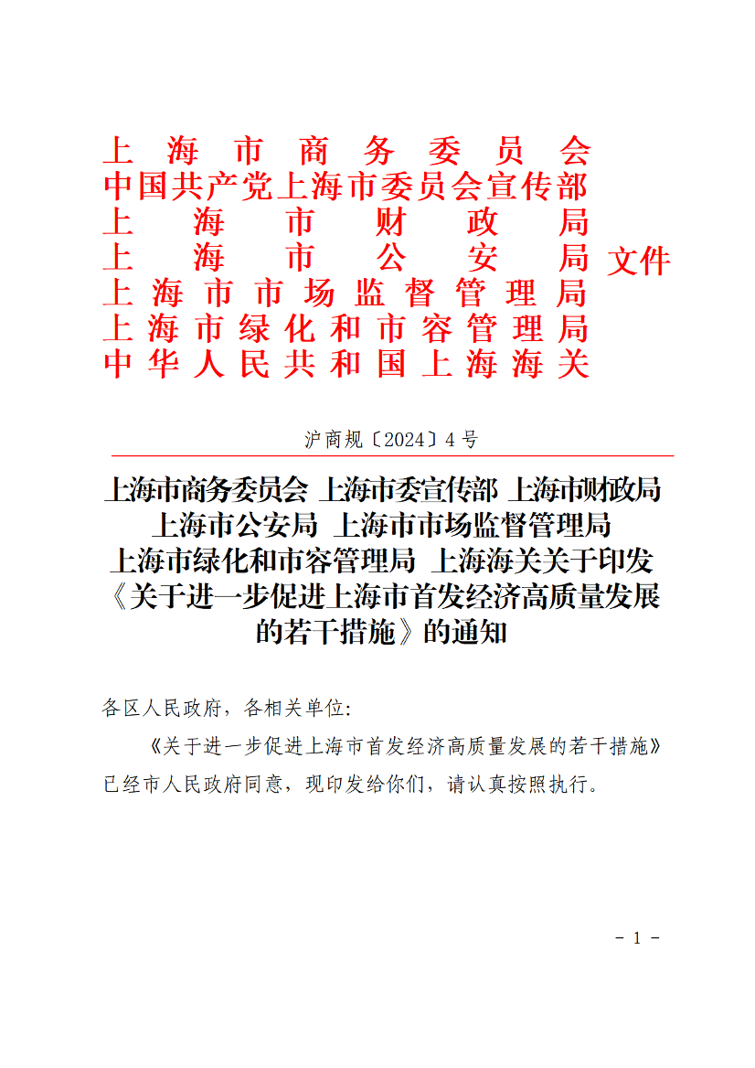 关于进一步促进上海市首发经济高质量发展的若干措施