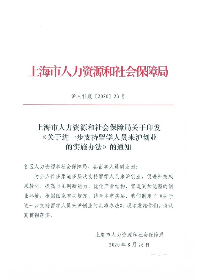 关于进一步支持留学人员来沪创业的实施办法