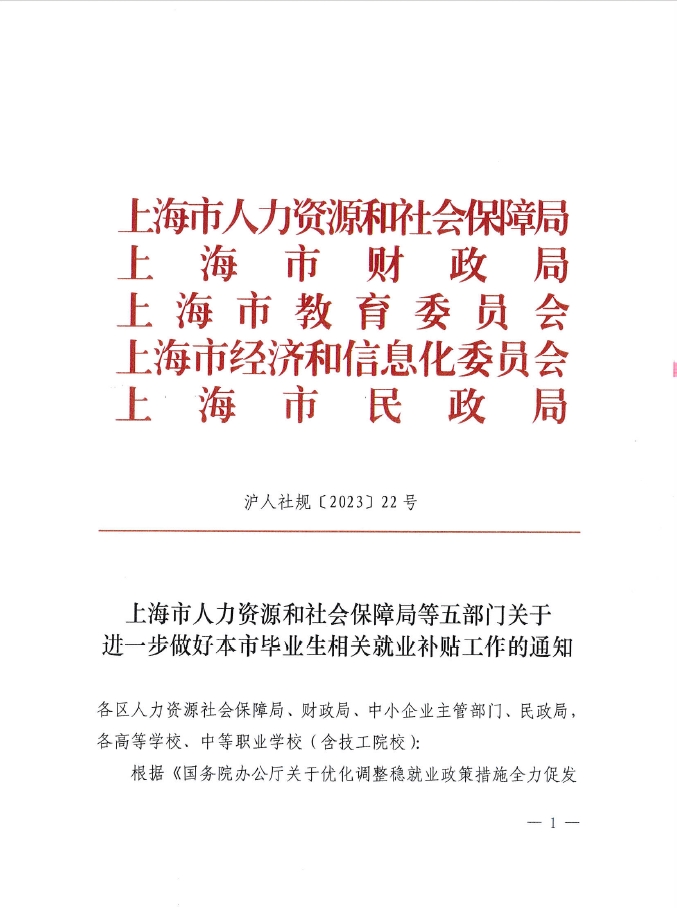 根据《国务院办公厅关于优化调整稳就业政策措施全力促发展惠民生的通知》(国办发〔2023〕11号)、《国务院办公厅关于进一步做好高校毕业生等青年就业创业工作的通知》(国办发〔2022〕13号)、《上海市人民政府关于做好本市当前和今后一个时期稳就业工作的意见》(沪府规〔2022〕6号)相关规定,现就做好本市毕业生就业补贴相关工作通知如下: