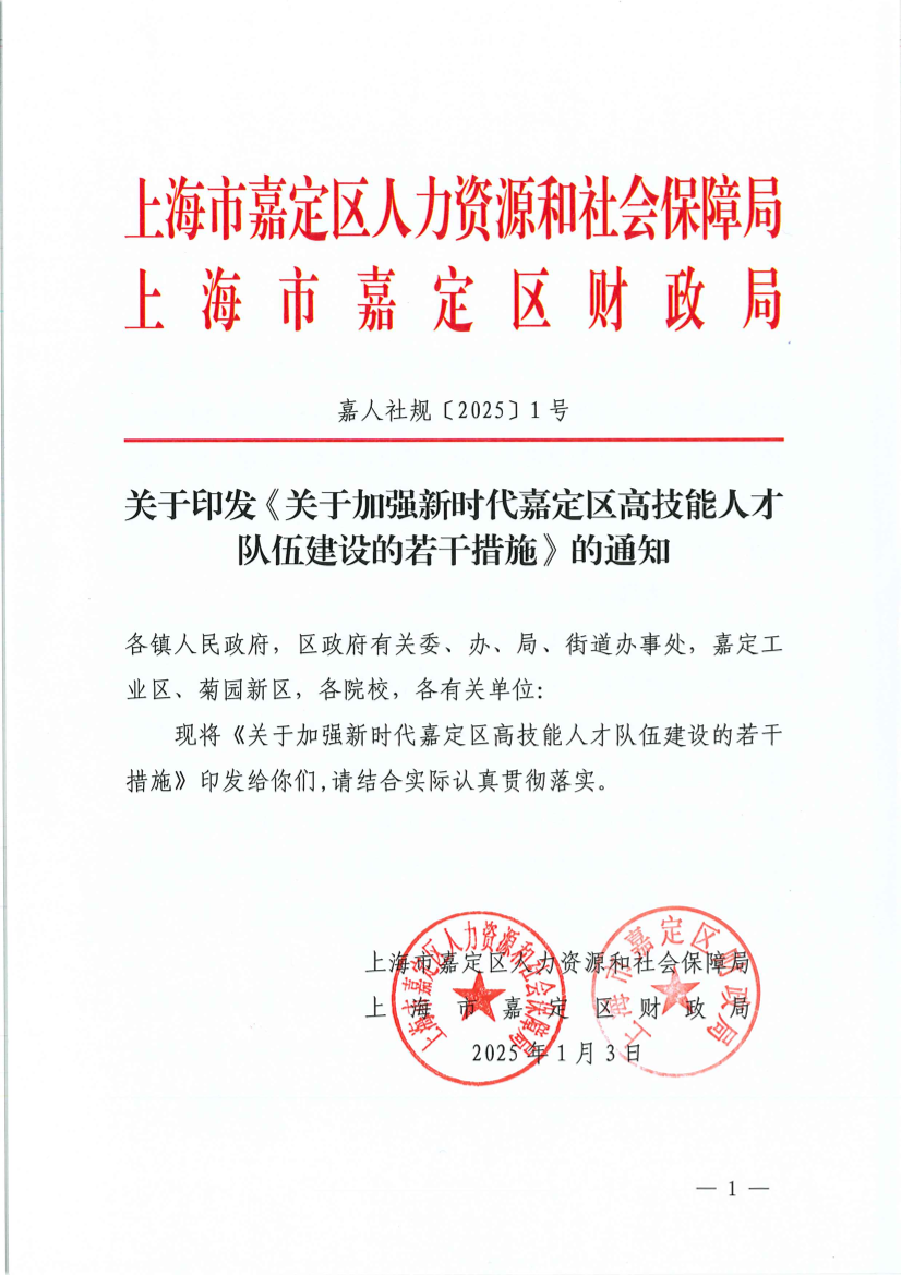 关于加强新时代嘉定区高技能人才队伍建设的若干措施
