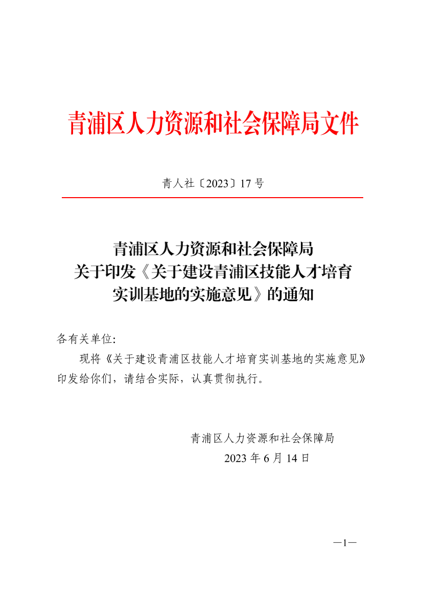现将《关于建设青浦区技能人才培育实训基地的实施意见》印发给你们,请结合实际,认真贯彻执行。