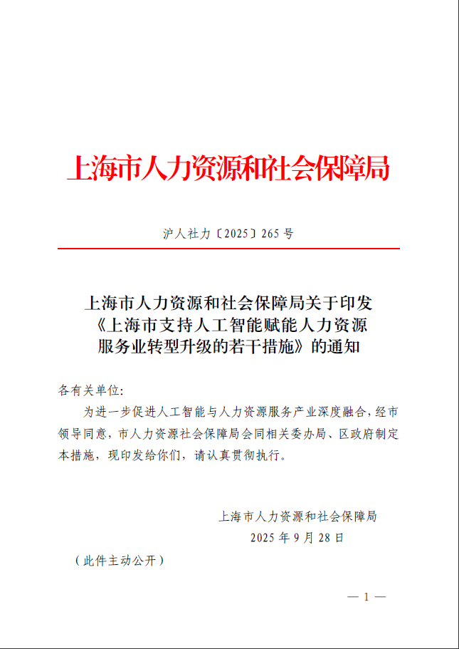 上海市支持人工智能赋能人力资源服务业转型升级的若干措施