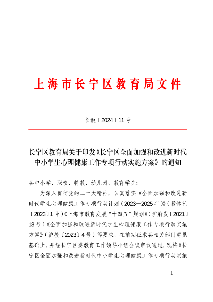 附件:长宁区全面加强和改进新时代中小学生心理健康工作专项行动实施方案