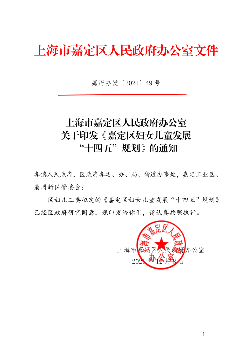 上海市嘉定区人民政府办公室关于印发《嘉定区妇女儿童发展“十四五”规划》的通知