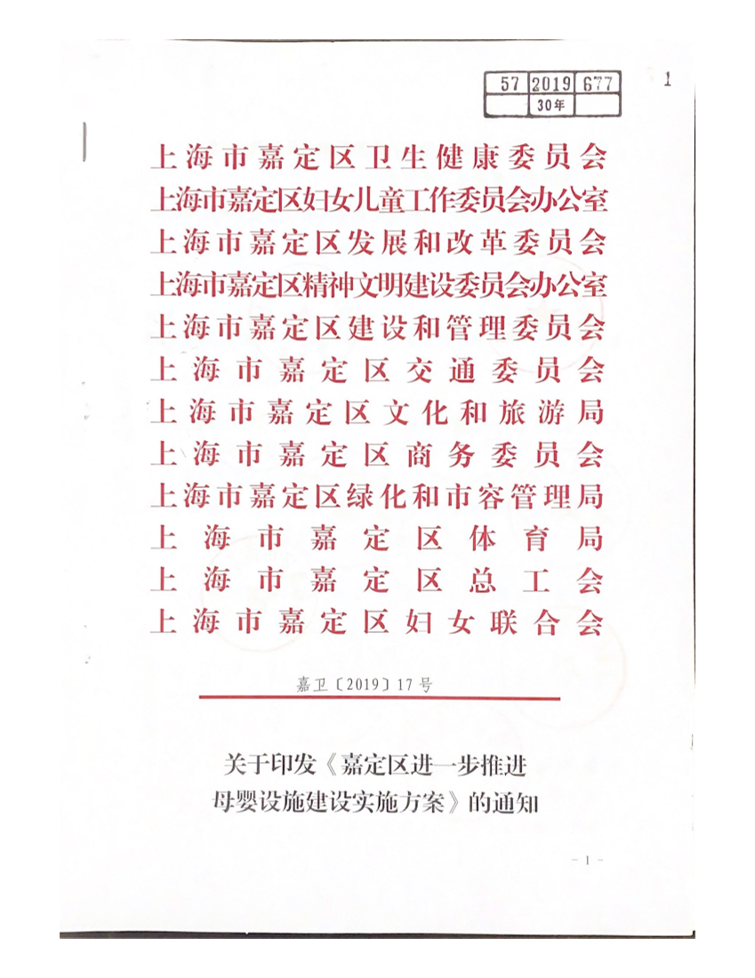关于印发《嘉定区进一步推进母婴设施建设实施方案》的通知