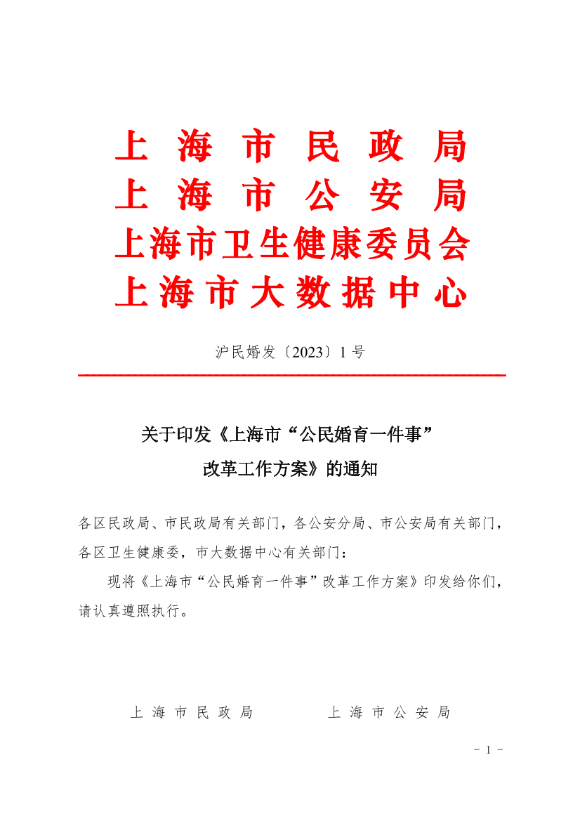 现将《上海市“公民婚育一件事”改革工作方案》印发给你们,请认真遵照执行。