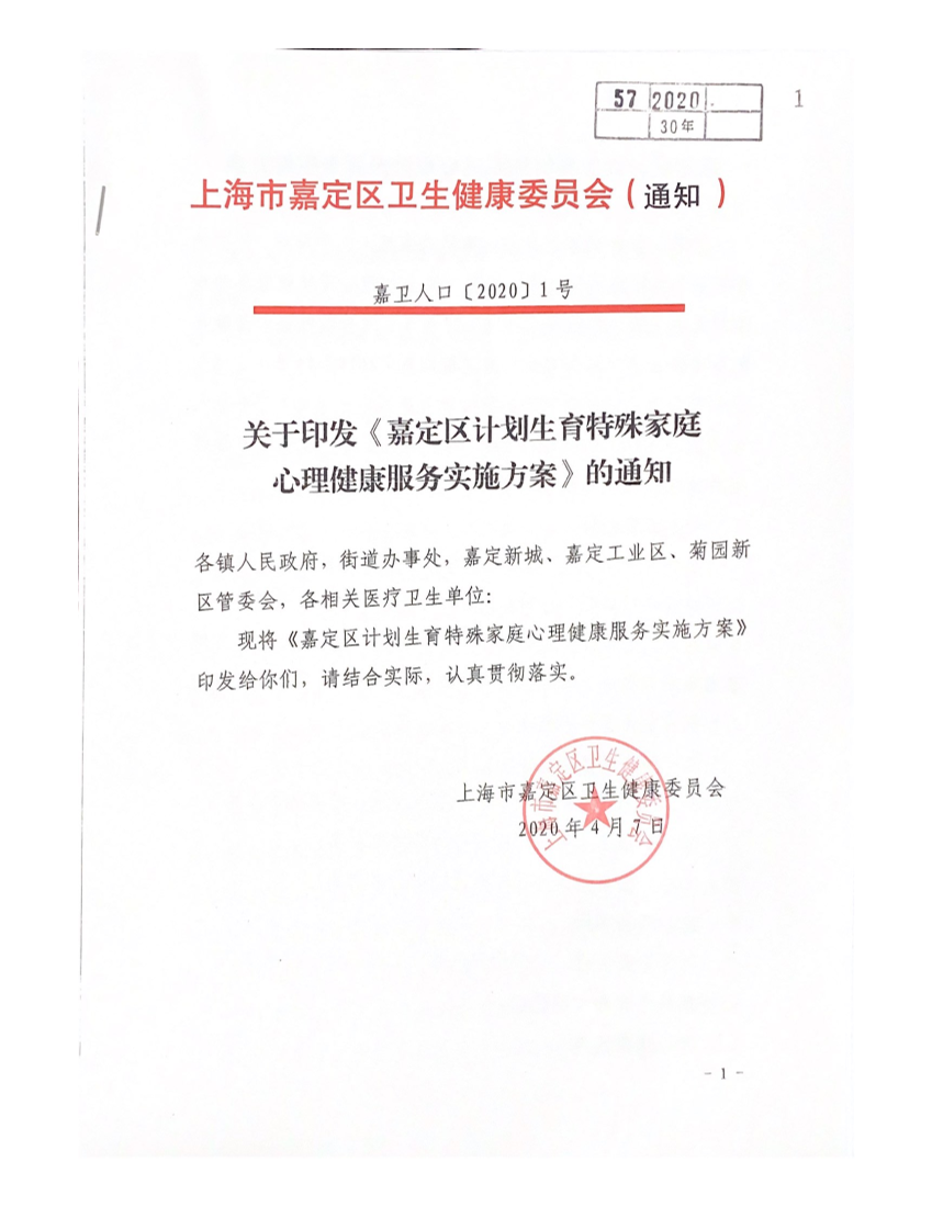 关于印发《嘉定区计划生育特殊家庭心理健康服务实施方案》的通知
