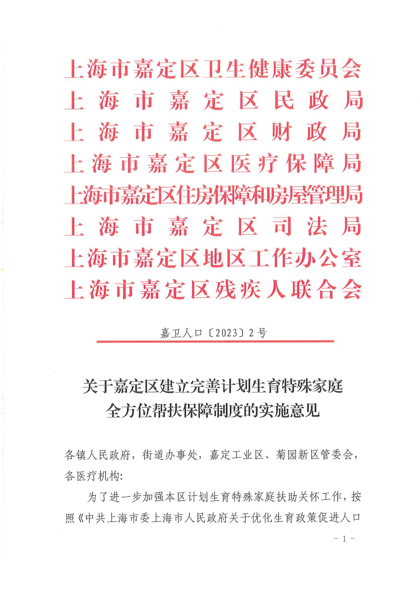为了进一步加强本区计划生育特殊家庭扶助关怀工作,按照《中共上海市委上海市人民政府关于优化生育政策促进人口长期均衡发展的实施意见》《上海市人口与计划生育条例》《上海市计划生育奖励与补助若干规定》等法律法规,根据《关于本市建立完善计划生育特殊家庭全方位帮扶保障制度的实施意见》(沪卫人口〔2023〕2号)精神,结合本区实际,现就建立完善计划生育特殊家庭全方位帮扶保障制度,提出如下实施意见: